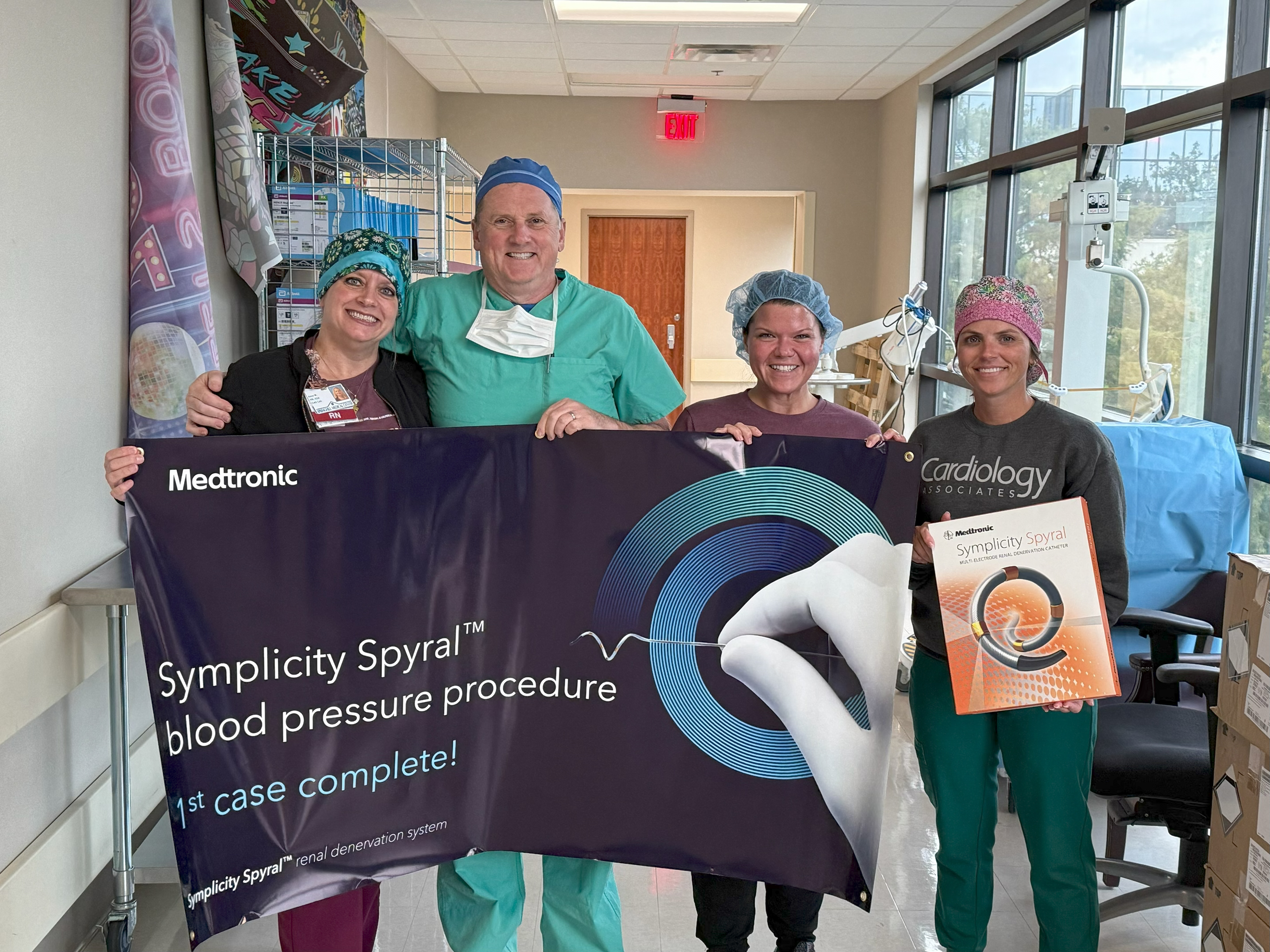 The first renal denervation (RDN) procedure at Springhill Medical Center was completed last week by Dr. John Galla of Cardiology Associates. The blood pressure procedure is now offered for certain patients and was approved by the U.S. Food and Drug Administration (FDA) in 2023. The Symplicity Spyral™ renal denervation (RDN) system involves a minimally invasive procedure that targets nerves near the kidneys that can become overactive and cause high blood pressure.